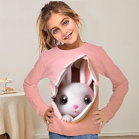 Påske Jente 3D Grafisk Dyr Kanin T skjorte T-skjorte Langermet Vår Høst Mote Grunnleggende Barn 4-12 år Crew-hals utendørs Avslappet Daglig Normal