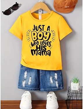 100 % bomull Barn Gutt Svart Hvit Grafisk Bokstaver T skjorte Bluse Crew-hals Kortermet utendørs Hverdag Mote Gatemote Designer Printer Sommer Vår