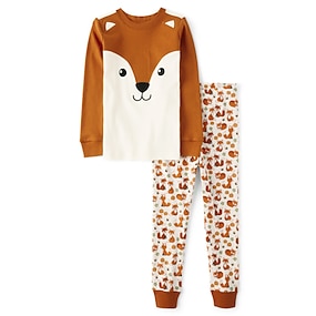 Jente 3D Rev Pysjamassett Langermet 3D-utskrift Høst Vinter Aktiv Mote søt stil Barn 3-12 år Crew-hals Hjem Avslappet Innendørs Normal