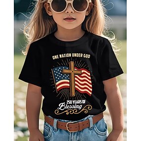 100 % bomull Barn Jente Svart Grafisk Kors 250-årsjubileum Barnas amerikanske flagg T skjorte T-skjorte Crew-hals Kortermet Feriereise Sport & Utendørs Hverdag Aktiv Ferie Fritid Printer Sommer