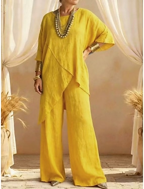 Dame Todelt sett Buksesett Imitert bomullslin Langermet Rund hals عادي Mote Gatemote Avslappet Daglig utendørs Svart Hvit Gul Sommer Løstsittende