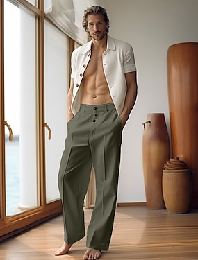 40% lin Herre Linbukser Bukser Sommerbukser Lomme Knapper Rett ben عادي Bekvem Pustende Feriereise Kontor & Karriere Daglig Klassisk Fritid Svart Hvit