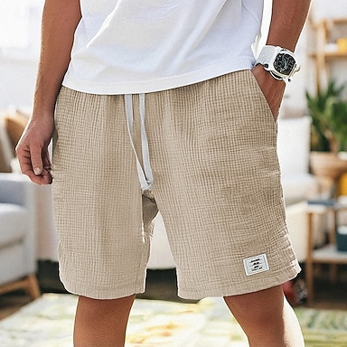 Herre Shorts Casual shorts Corduroy shorts Teksturerte shorts Lomme Elastisk midje Helfarge عادي Komfort Pustende Knelengde Avslappet utendørs Strand Ferie Mote Blå Svart Mikroelastisk