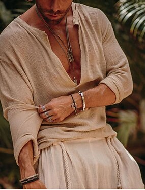 Herre Skjorte Linskjorte Viking stil Sommerskjorte Strand Klær عادي Avslappet Daglig Blå Svart Hvit Rosa Langermet V-hals Sommer Vår Klær Blondér