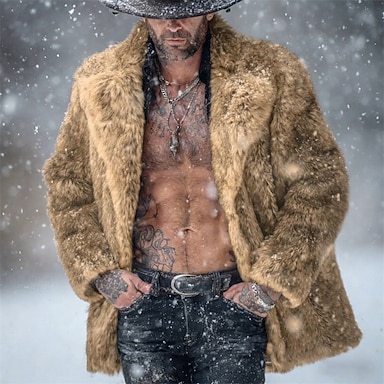 Herre Vinterjakke Fuskepels Feriereise Daglig Hold Varm Fleece Vinter عادي Mote Gatemote Knaphul Lang Gul Jakker