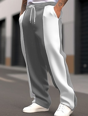 Herre Joggebukser Joggebukse med brede ben Bukser Snorer Lapper Lomme Fargeblokk Komfort Sport & Utendørs Daglig Mote Fritid Svart Rød Mikroelastisk
