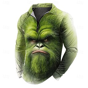 Herre Dyr Poloskjorter med glidelås Langermet Poloskjorter Knaphul Fritid utendørs Festivalantrekk 3D-utskrift Vår Høst Vinter Rød Lilla Grønn