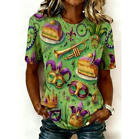 Karneval Mardi gras Dame T skjorte Trykt mønster Grafisk Årgang Mote Stilfull Kortermet Crew-hals Vanlige topper Daglig Lysegrønn Lilla Grønn Sommer Vår