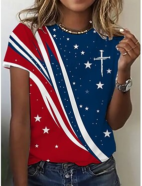 Uavhengighetsdag Patriotisk Kvinnenes T-skjorte Grafisk Flagg Vintage Stilren Klassisk Kort Ermet Crew Neck Vanlige Topper Daglig Helgetrykk Blå Rød Sommer Vår