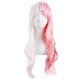 Karnevalsparykk 2026 Blond Lyserød Rød Rett Bølget Lang Syntetisk festivalparykk Mardi Gras Parade Cosplay-kostymehår til Dame