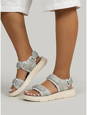 grå flate sportsandaler for kvinner – lette justerbare tursandaler med trippelreim, komfortable utendørssko for utendørs bruk og reiser &daglig bruk