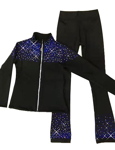 Jakke og bukser til kunstløp Dame Jente Skøyteløp Drakter Svart Elastisk Trening Konkurranse Skøyteklær Hold Varm Krystall / Rhinstein Langermet Skøyting Kunstløp