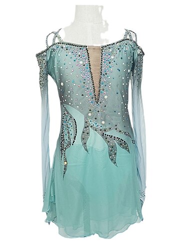 Kjole til kunstløp Dame Jente Skøyteløp Kjoler Himmelblå Åben Ryg Netting Spandex Høy Elastisitet Trening Konkurranse Skøyteklær Klassisk Krystall / Rhinstein Langermet Skøyting Kunstløp