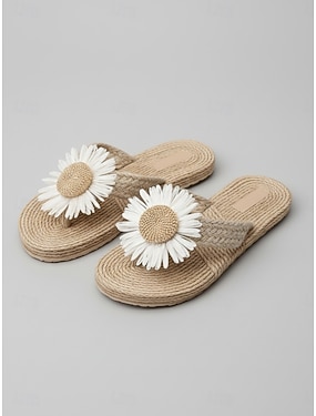 blomstersandaler for kvinner – flate strandsko i boho-stil med 3d-blomsterdesign for sommerferie og fritidsklær