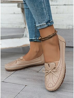 Mokkasin loafers kvinner – myke sko med sløyfedetalj og rhinestonesdesign ideelle uformell komfort og vår/sommer gåturer