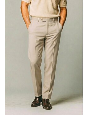 Menn Bomull Lin Dressbukser Uformelle bukser Formell Møte Lettvekt Klassisk Fritid hverdag Salvie Beige Sommer Bukser Helfarge Normal Lang Uelastisk