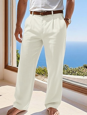 Herre Linbukser Bukser Sommerbukser Joggebukser Elastisk midje Rett ben Høydestigning Helfarge عادي Komfort Pustende Full lengde Bryllup Ferie Ferie Mote Svart Hvit Høy Midje Uelastisk