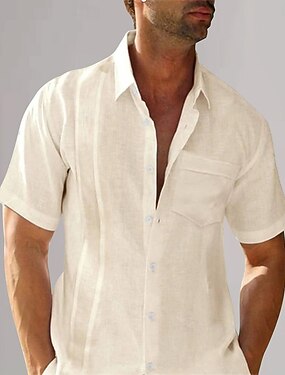 45% Lin Herre linskjorte Popover skjorte Sommerskjorte Strandskjorte Hvit Rosa Beige Kortermet عادي Knaphul Sommer utendørs Daglig Klær