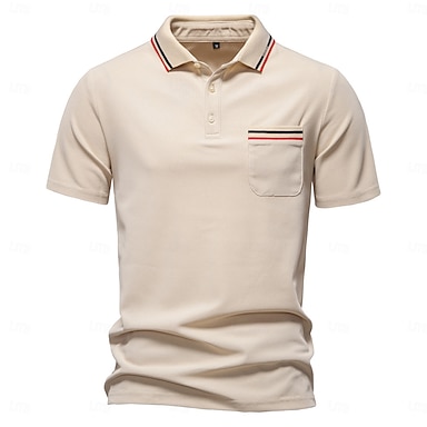 Herre Polo Strikk polo Formell Arbeid Aftæpning Kortermet Fargeblokk Stripe-Trim Stripe Vår Vin Hvit Navyblå Militærgrønn Beige Polo