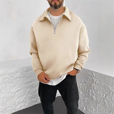 Herre Genser Kvart glidelås genser Svart Beige Grå Lyseblå Halv glidelås عادي Quarter Zip Sport & Utendørs Daglig Ferie Polyester Gatemote Grunnleggende Fritid Høst Vinter Klær Gensere Gensere