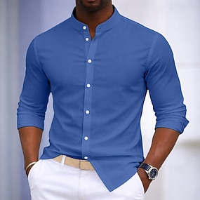 Herre Skjorte Dresskjorter Skjorte med knapper 100% قطن عادي Daglig Virksomhet Lyseblå Svart Hvit Militærgrønn Langermet bestefars krage Alle årstider Klær