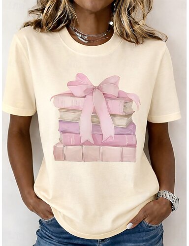 Dame T skjorte Trykt mønster Blomstret Grafisk Mote Stilfull Klassisk Kortermet Crew-hals Rund hals Vanlige topper Avslappet Daglig Helg Blå Hvit / Svart Grønn med beige Hvit Gul Sommer Vår