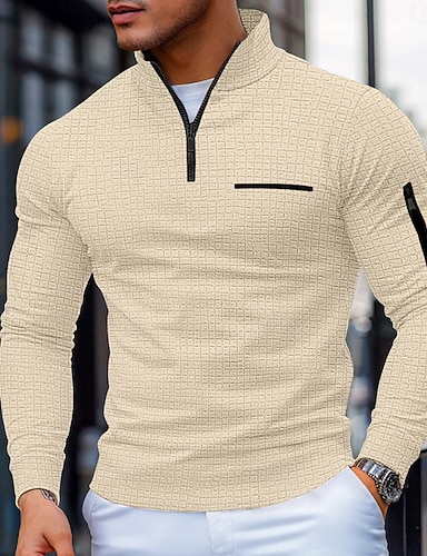 Herre Vaffel poloskjorter Med Tekstur Sport & Utendørs Dagligdagstøy Quarter Zip Langermet Mote Bekvem Fargeblokk Ta igjen glidelåsen Lomme Vår & Vinter Kryss-sesonger Normal Svart Hvit Navyblå Lilla