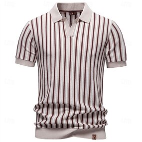 Herre Polo Strikk polo Virksomhet Avslappet V-hals Kortermet Formelt Linjer / bølger Original Sommer Alle årstider Svart Hvit Militærgrønn Beige kaffe Polo