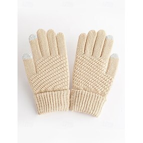 Dame vintertermiske berøringsskjermhansker, fleecefôrede strikkede varme hansker til jul, utendørsklær til kaldt vær og julegaver