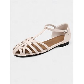 kremfargede damesko med lukket tå og stropper – elegante sandaler i gladiatorstil for fritidsbruk, jobb og sommerutflukter