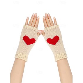Fingerløse strikkehansker til dame med hjertedesign, flere farger, ideelle for valentinsdagen og hverdagsbruk på høsten/vinteren