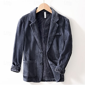 Herre Kordfløyel jakke Halskrage Årgang Mote Utendørs Ensfarget Blazer Blå kaffe Grå Skreddersydd Single Breasted To-knapper
