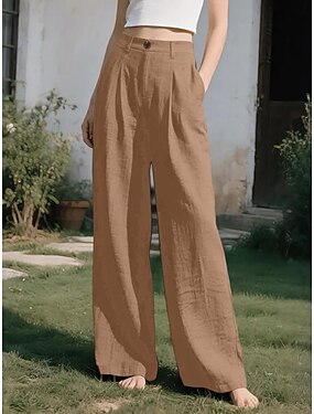 Dame Imitert bomullslin Bred Bukseben Uformelle bukser Sommerbukser Ferie Gatemote Grunnleggende Full lengde Middels midje عادي Flettet Lomme Pusteevne Bekvem Uelastisk Daglig utendørs Feriereise Gr