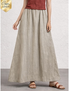 70 % lin dame linskjørt bomullslinskjørt avslappet maxiskjørt med middels høy midje ensfarget brodert lomme uelastisk daglig ferie aprikos lys brun vår høst