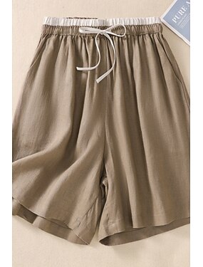 Dame Store størrelser Shorts i bomullslin Lin-inspirerte bukser Fôret shorts Sommerbukser Enkel Fritid Komfort Lang Naturlig Ren farge Mikroelastisk Hjem Gate Blå Hvit Grønn Kakifarget Sommer Vår
