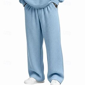 Herre Vaffelstruktur Joggebukser Bukser Uformelle bukser Joggebukse med rett ben Snorer عادي Komfort Pustende Full lengde Avslappet Daglig utendørs Ferie Mote Blå Svart Mikroelastisk