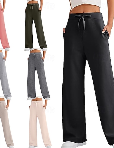 Dame Fleecebukser Bukser Posete bukser Uformelle bukser Ferie Mote Grunnleggende Full lengde Høy Midje Helfarge عادي Snorer Elastisk midje Rett ben Myk Bekvem Pustende Elastisk utendørs Gate Ferie