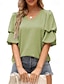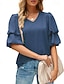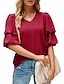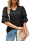 Dame Skjorte Bluse Chiffongoverdeler عادي Stilfull Grunnleggende Klassisk Kortermet Puffermer V-hals Vanlige topper Avslappet Daglig Ferie Blå Svart Hvit Vin Mørkegrønn Sommer Vår