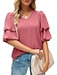 Dame T skjorte T-skjorte Blonde Lapper عادي Mote Stilfull Klassisk Kortermet V-hals Vanlige topper Avslappet Daglig Ut på byen Svart Hvit Lysegrønn Dusty Rose Rød Sommer Vår