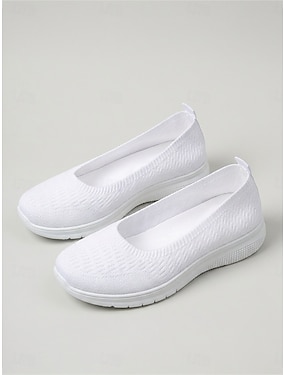 hvite, lette slip-on-sko for dame – pustende, strikkede komfortsko for reiser, daglig bruk og fritidsbruk