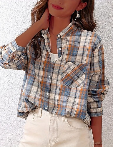Dame Skjorte Teksturbluse Bluse Lomme Knapper عادي Moderne Fritid Langermet Skjortekrage Vanlige topper Ferie Ut på byen Blå Svart Hvit Gul Rosa Høst