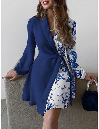 Dame Mini kjole Wrap-kjole Kjole med A-linje Fritid Daglig Normal Blomstret Grafisk Langermet V-hals Hvit Rosa Vin Rød Vår Høst