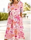 Kvinners Midi Kjole Boho Blomstermotiv Kunst Print Vintage Kjole Ferie Casual Gå Ut Strand Vanlig Passform Blomstermotiv Uten Ermer U Utringning Rosa Vin Lys Brun Blå Sommer Vår