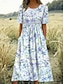 Dame Midikjole Skiftkjole Ferie Fritid Ferie Normal Blomstret Grafisk Kortermet Crew-hals Blå Rosa Himmelblå Sommer Vår