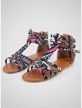 Fargerike vevde gladiatorsandaler til dame - livlige bohemske flate sandaler med flere stropper for feriesteder og sommerfestivaler &tropisk reise