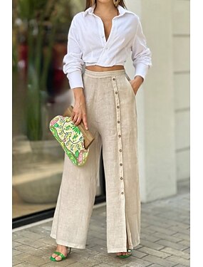 Dame Imitert bomullslin Dressbukser kinesisk Sommerbukser Elegant Mote Grunnleggende Full lengde Høy Midje عادي Bekvem Uelastisk Daglig Arbeid Formell Aprikos Svart Aske-farget Sommer Vår Løstsittende