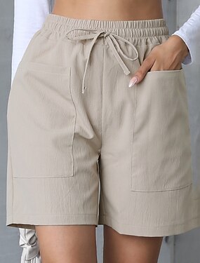 Dame Shorts Sommershorts Strandshorts Casual shorts Ferie Mote Gatemote Kort Høy Midje عادي Snorer Lomme Elastisk midje Komfort Myk Bekvem Elastisk utendørs Gate Ferie Dyp Grønn Aprikos Svart Hvit