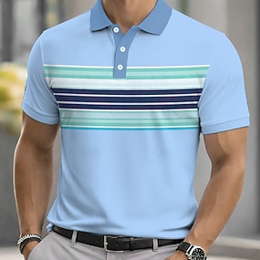 Herre Horisontale strips Linje Poloskjorter Kortermet Poloskjorter Skjorter med krage Fritid treningsklær Dagligdagstøy Knapper Vår sommer Blå Gul Grønn