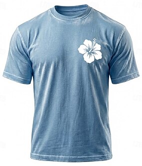 Herre Blomstret Hawaii T skjorte Mineralvask-T-skjorte Kortermet T skjorte Syrevask Crew-hals Skjorte Ferie Vintage retro Avslappet Strand Reise Blå Lilla Grå Sommer Vår Klær M L XL 2XL 3XL