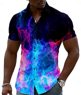 Herre 3D Print Flamme Blend farge Skjorte Skjorte med knapper Avslappet skjorte Kortermet Fashion Casual Gateklær Feriereise Vår Høst Aftæpning 3D-utskrift krage skjorter Blå Lilla Oransje